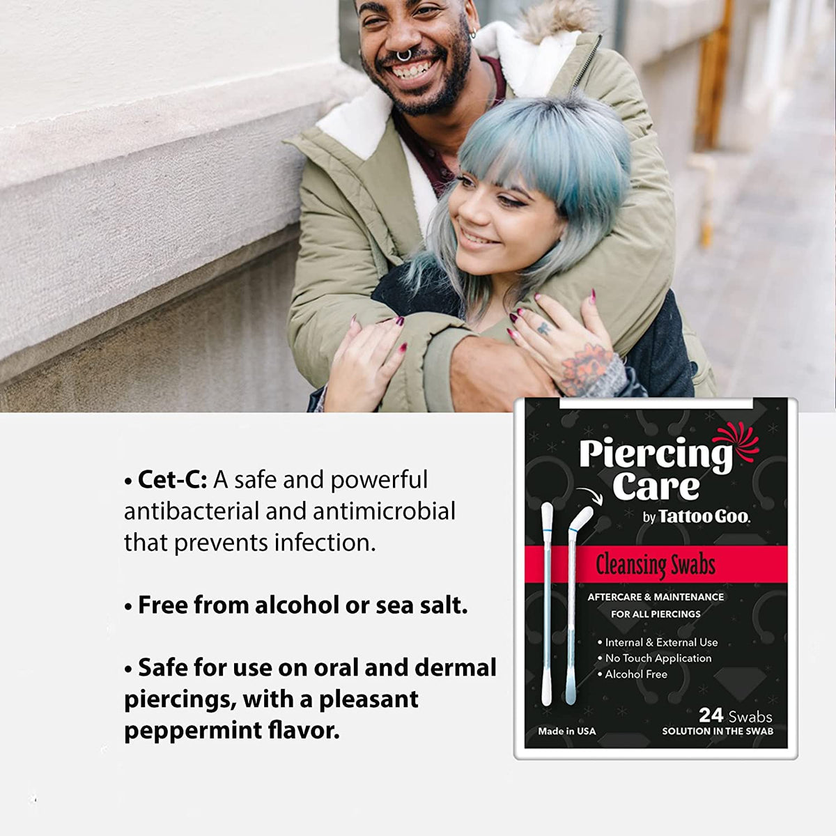The Tattoo Goo Complete Body Piercing Aftercare Kit Set with a new formula is designed to provide optimal care for your body piercings. This kit includes essential products for healing and maintaining your piercings, ensuring a safe and hygienic aftercare routine.
