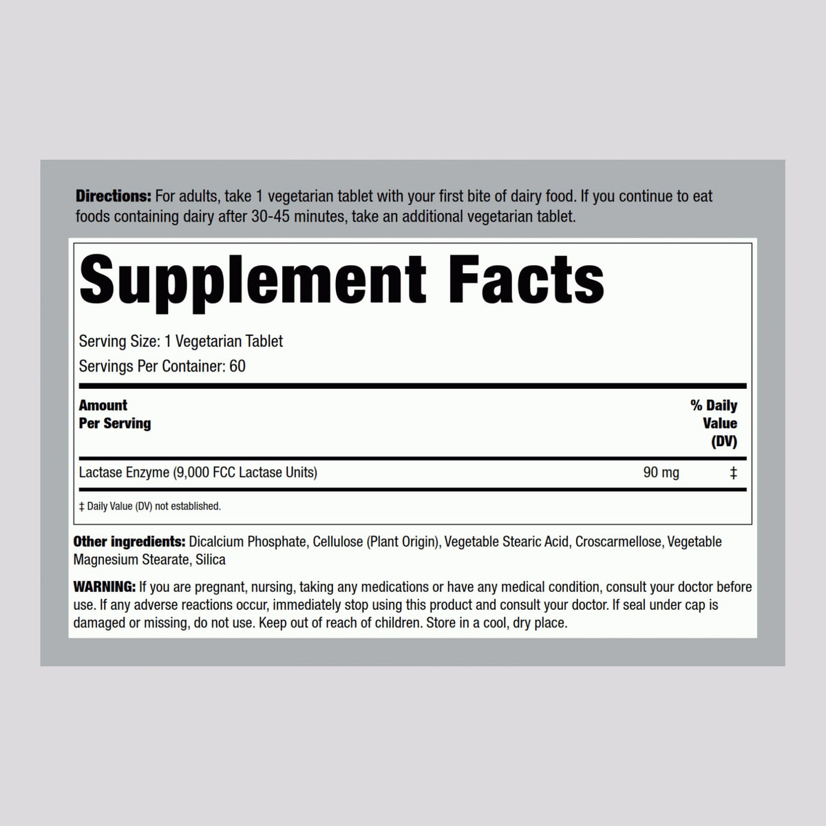Piping Rock Dairy Relief Lactase Enzyme Tablets | 9000 FCC | 60 Pills | Fast Acting Supplement | Vegetarian, Non-GMO, Gluten Free