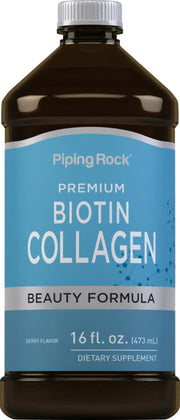 Piping Rock Liquid Collagen and Biotin 16 fl oz | Premium Beauty Formula Supplement | Type 1 and 3 | Berry Flavor | Non-GMO and Gluten Free