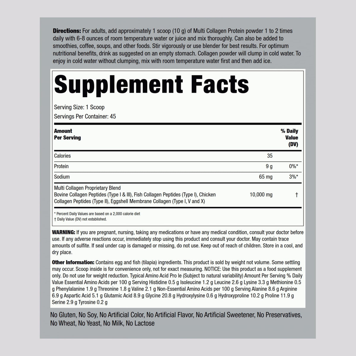 Piping Rock Multi Collagen Protein Powder | 16 oz Unflavored | 10,000mg Peptides Complex | Type i, ii, iii, v, x | Gluten Free, Non-GMO Supplement
