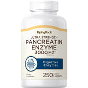 Piping Rock Pancreatin Digestive Enzymes is a powerful supplement designed to support digestive health and enhance nutrient absorption. With 3000mg strength in 250 caplets, this non-GMO and gluten-free formula promotes overall wellness.