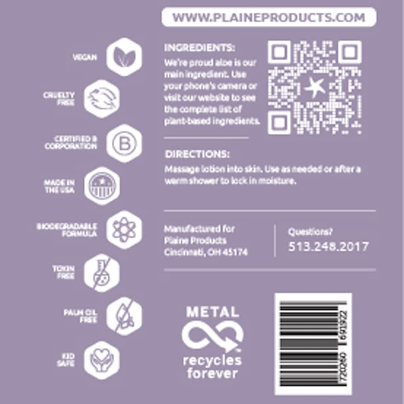 - Natural, Vegan Body Lotion. Cruelty Free. Biodegradable. Non GMO Ingredients. Plaine Products Body Lotion is a lightweight, fast-absorbing, hydrating body moisturizer. With vegan ingredients and aloe as a base, daily use will leave skin soft and supple.