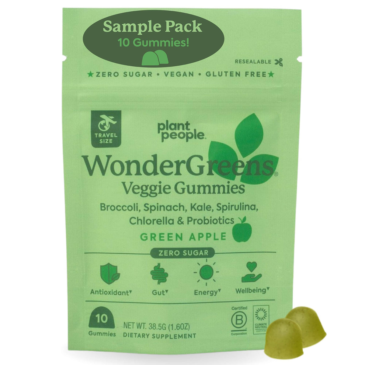 Plant People WonderGreens Veggie Gummies Super Greens with Probiotics Multivitamin Support Gummy for Wellbeing, Energy, Immune and Gut Health, Green Apple Flavor (Trial Size, 10 Count)
