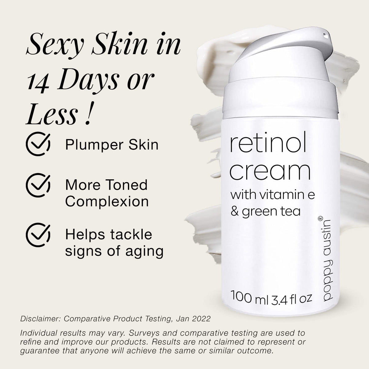 poppy austin Retinol Cream for Face 3.4OZ, High-Strength Retinol Night Cream - Cruelty Free Wrinkle Cream - Anti Aging Eye Cream For Face & Body