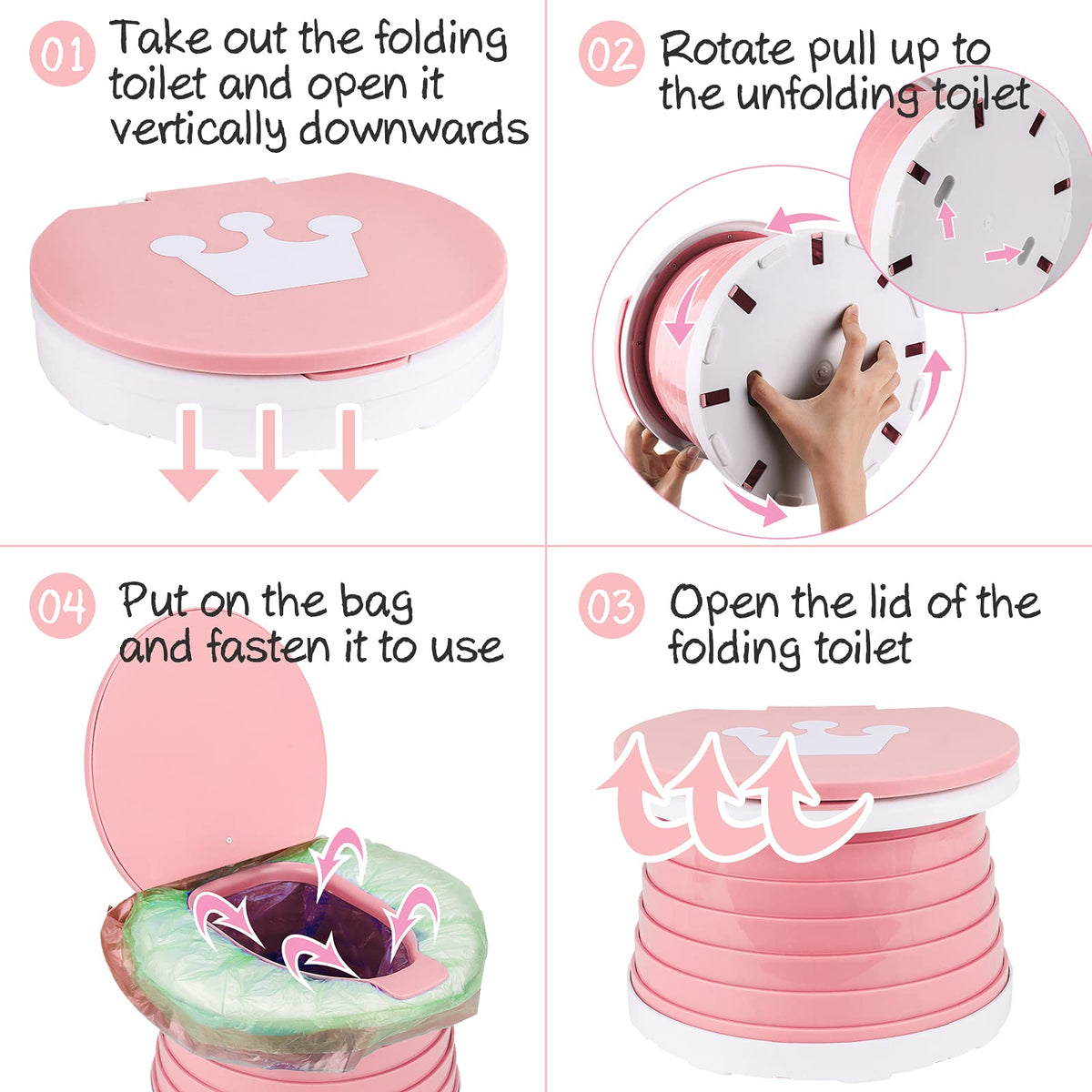 The Portable Potty Seat is a convenient and foldable toilet chair for toddlers. This kids' travel potty in Blue color is perfect for indoor and outdoor use, providing a hygienic and comfortable solution for potty training on the go.