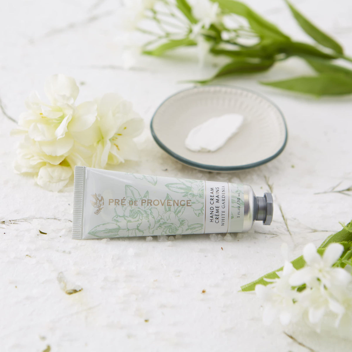 Pre de Provence Hand Cream in White Gardenia is a soothing and moisturizing formula enriched with shea butter, providing intense hydration and a delicate floral scent for soft and nourished hands.