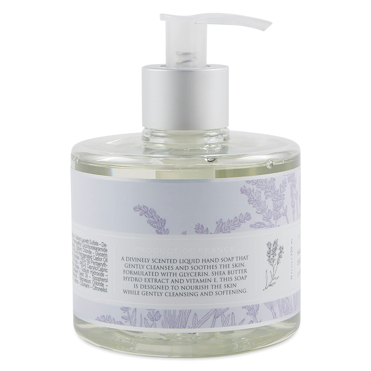 Pre de Provence Collection Shea Butter Enriched Liquid Soap in Lavender scent. Soothing and moisturizing formula in an 11 fl oz bottle.