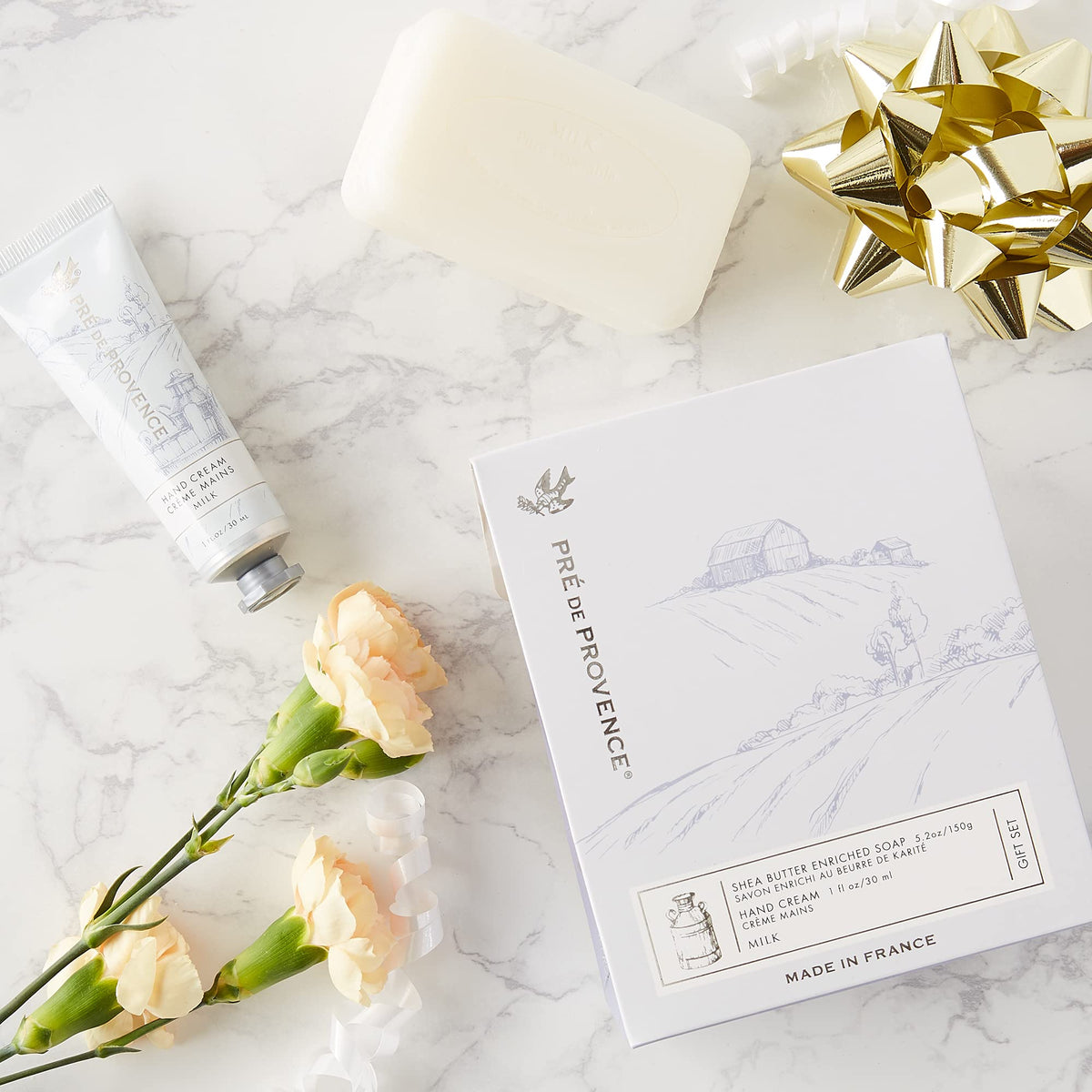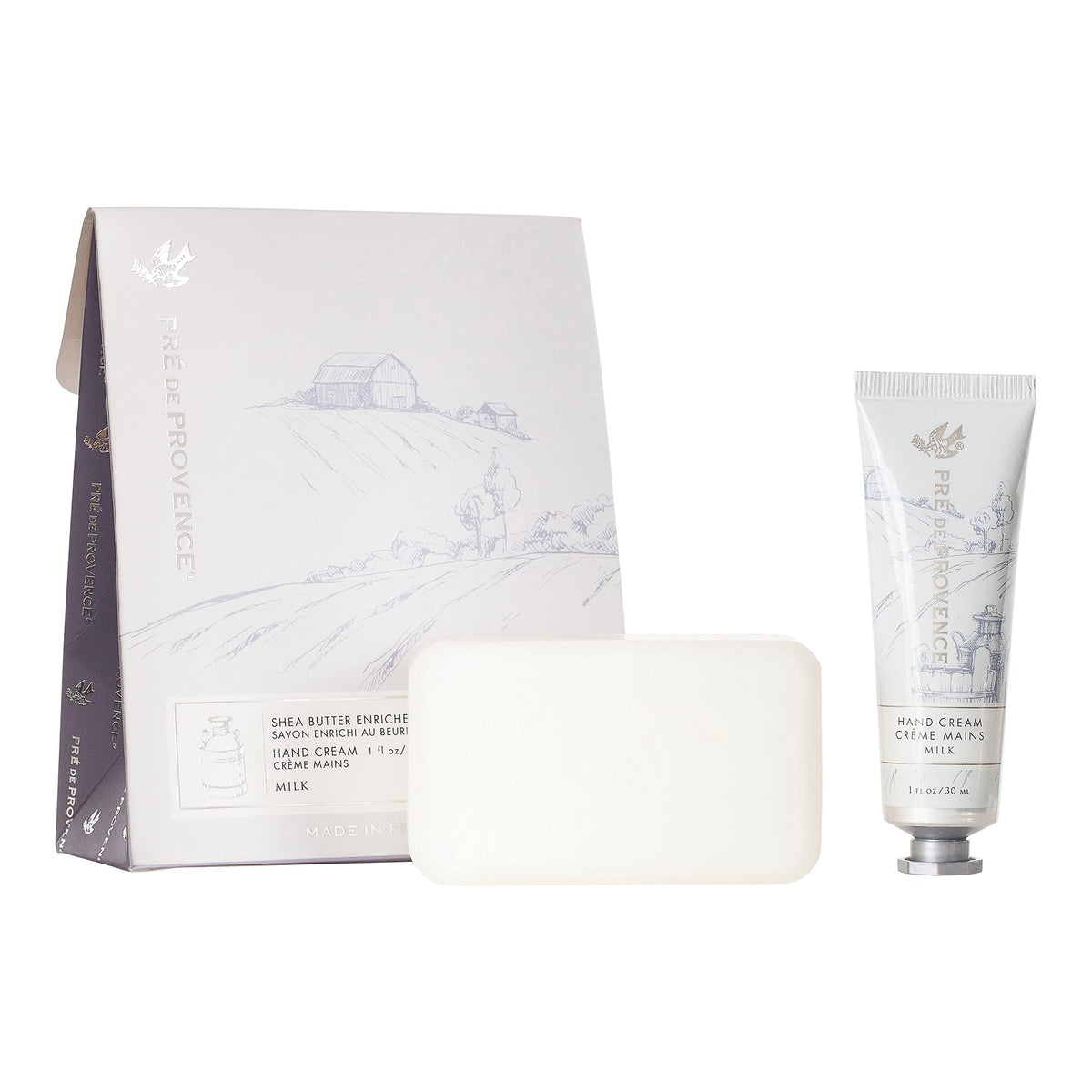 Pre de Provence Gift Set Collection 150 Gram Soap Bar & 1 fl oz Hand Cream, Milk