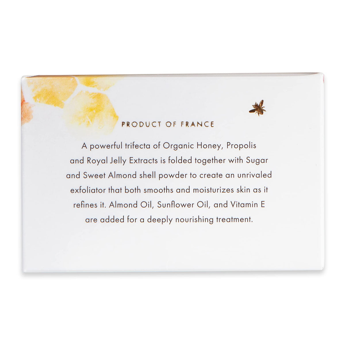 | special ingredients | Sucrose, Prunus Amygdalus Dulcis Sweet Almond Oil, Helianthus Annuus Sunflower Seed Oil, Hydrated Silica, CaprylicCapric Triglyceride, Acacia DecurrensJojobaSunflower Seed CeraPolyglyceryl3 Esters Acacia DecurrensJojobaSunflower Seed Wax Polyglyceryl3 Esters, Parfum Fragrance, Lauryl Glucoside, Polyglyceryl2 Dipolyhydroxystearate, Aqua Water, Glycerin, Prunus Amygdalus Dulcis Sweet Almond Shell Powder, Coumarin, Mel Extract Honey Extract, Tocopherol, Citric Acid, Daucus Carota Sativa Carrot Root Extract, Royal Jelly Extract, Propolis Extract, Potassium Sorbate, Sodium Benzoate |