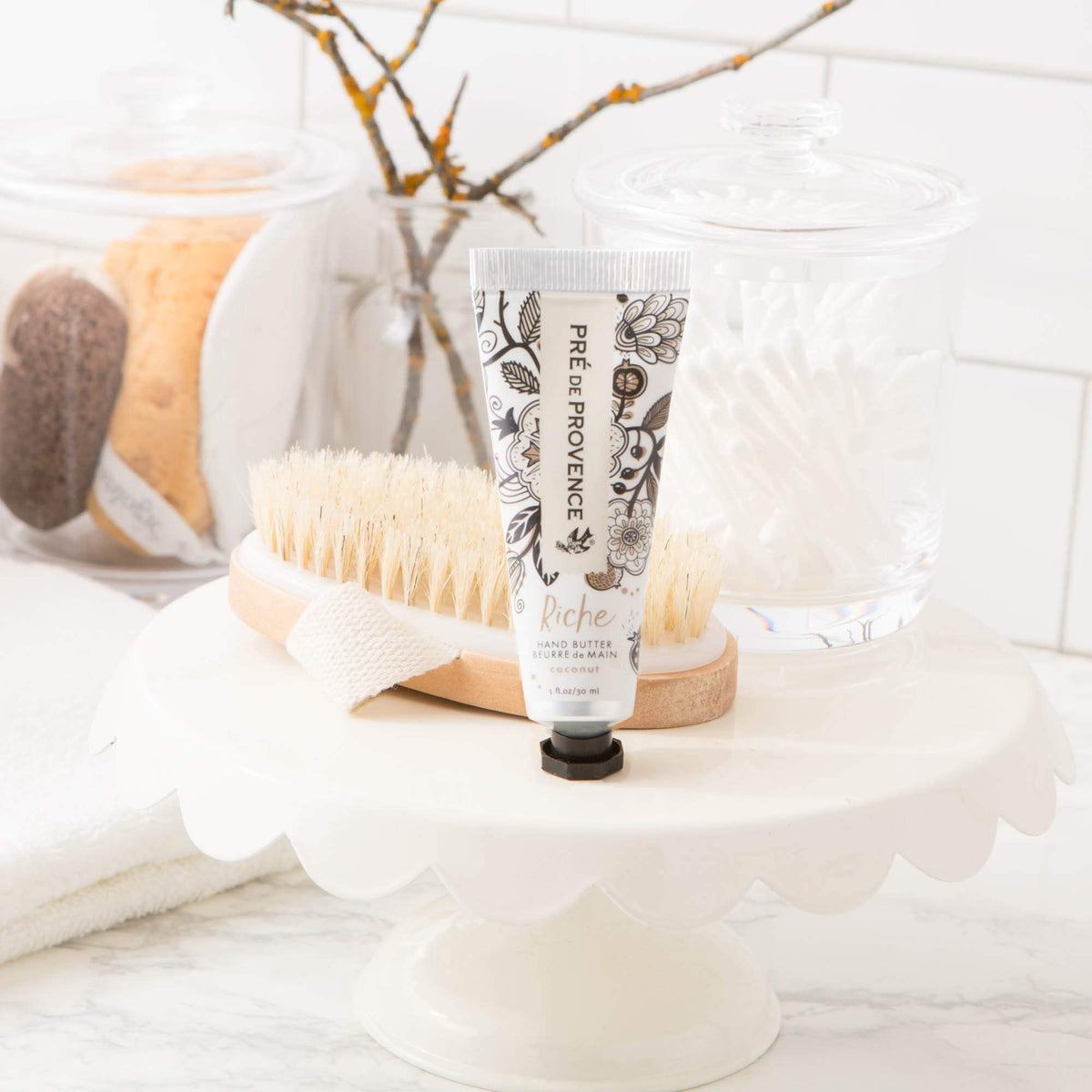 Pre de Provence Riche Collection Hand Butter in Coconut is a 30 ml hand butter. Pamper your hands with this luxurious coconut-scented butter.