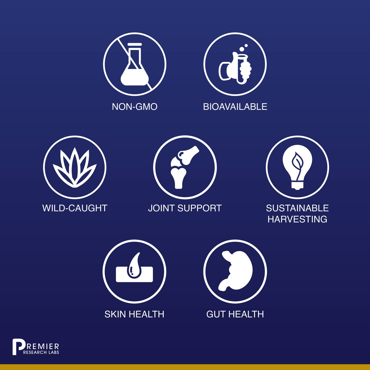 Premier Research Labs Marine Collagen offers a potent source of collagen peptides derived from marine sources, promoting skin, joint, and gut health for both men and women.