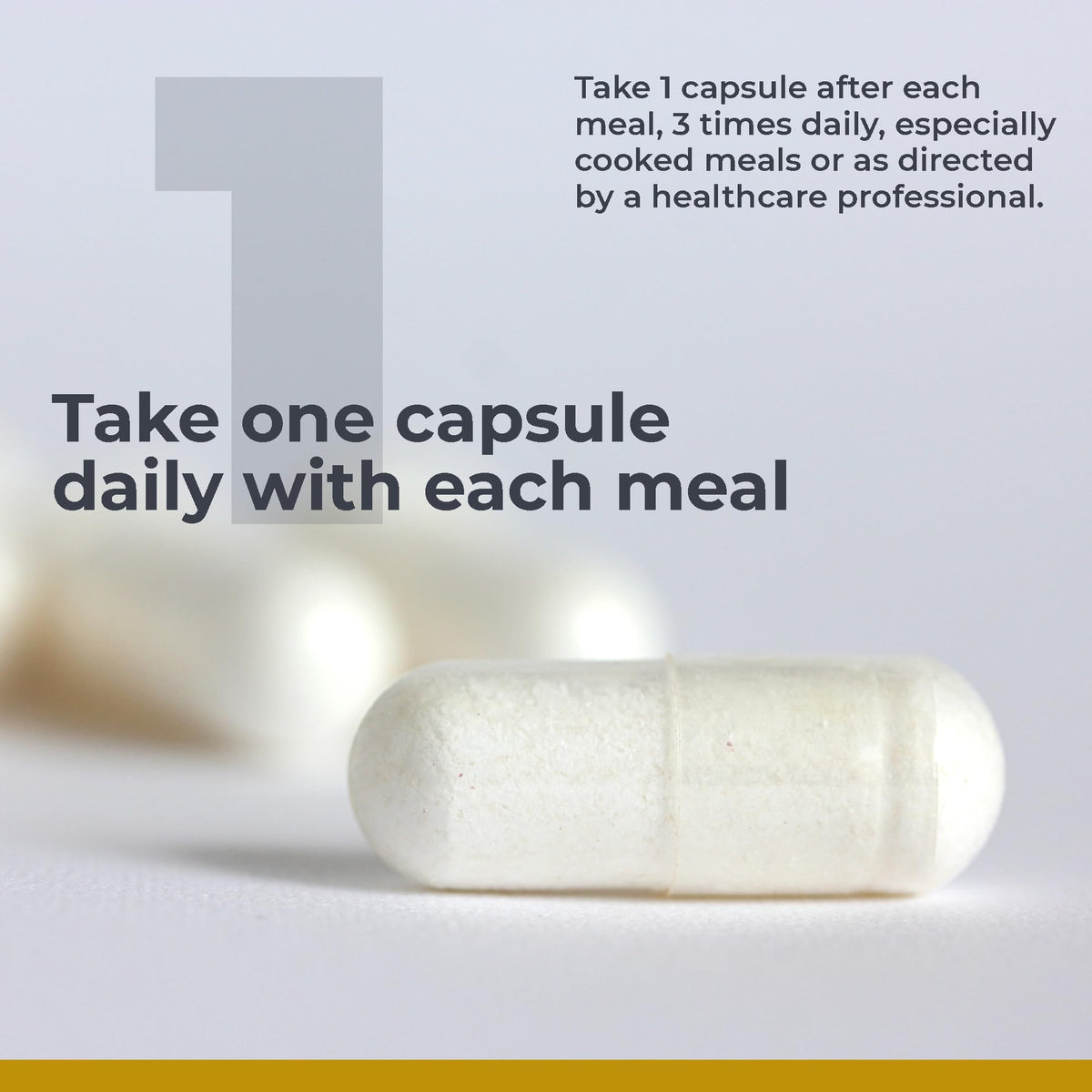 Directions :: Take 1 capsule after each meal daily, especially after cooked meals or as directed by a health professional.