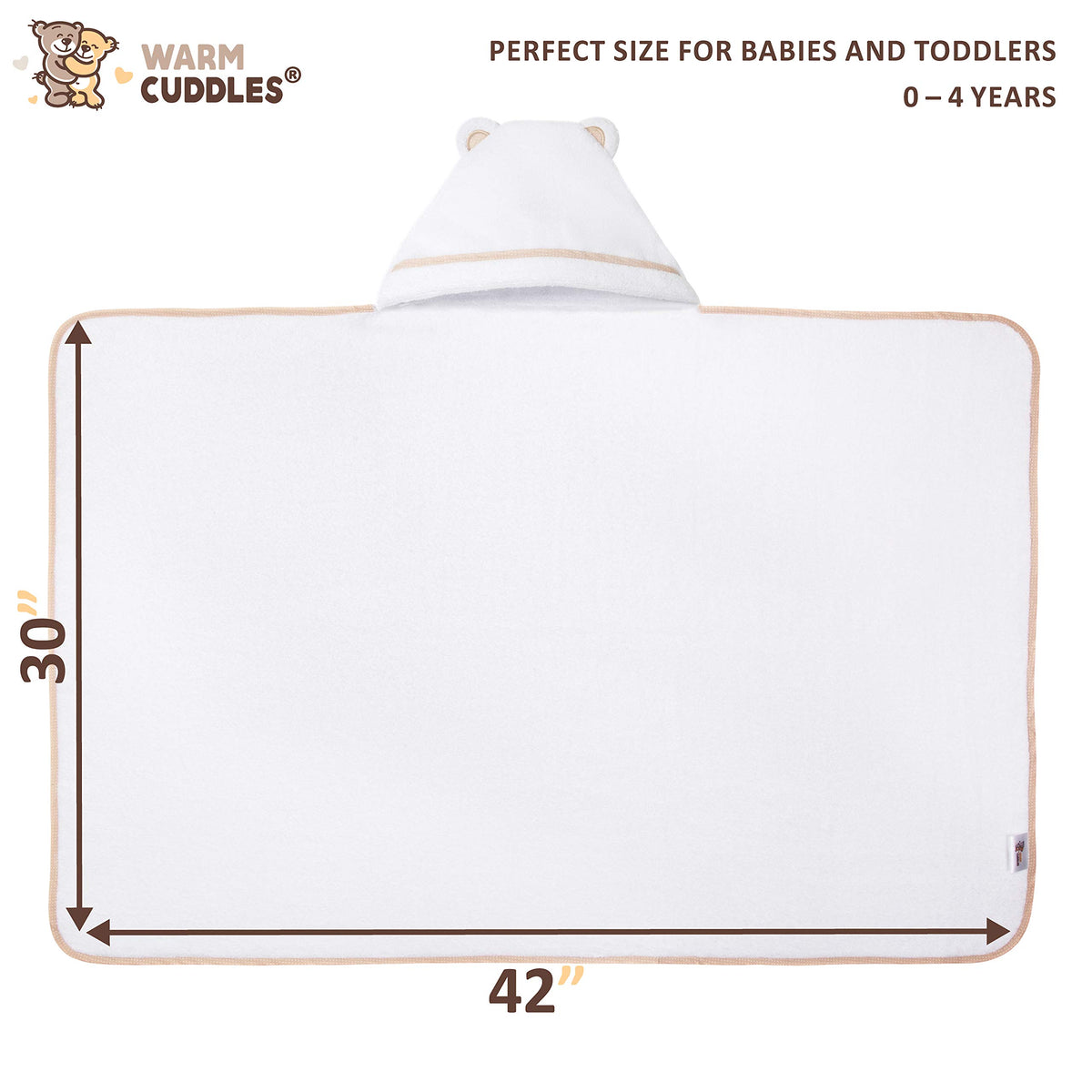 Premium Toddler Towels with Hood | Rayon Made from Bamboo Toddler Bath Towel | Large Hooded Towels for Toddlers | Toddler Towels for Girl Boy (White)