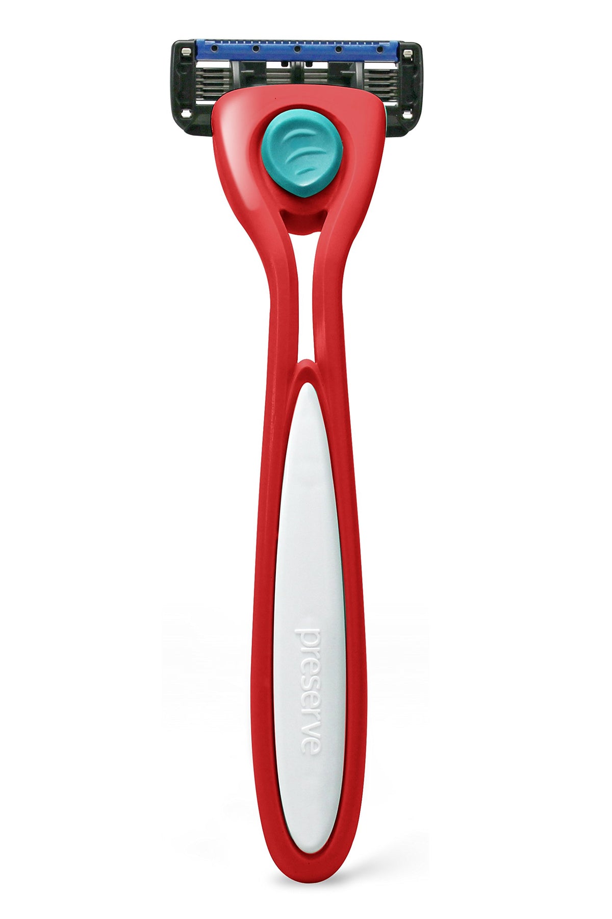 Preserve Shave 5 Five Blade Refillable Razor, Made from Recycled Materials, Poppy Red