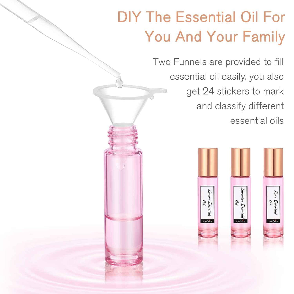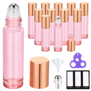 PrettyCare 12 Pack, 10 ml Essential Oil Roller Bottles with Stainless Steel Roller Ball - Refillable Leak-proof Empty Thick Pink Glass Roll on Bottles with Metal Caps for Travel, Perfume