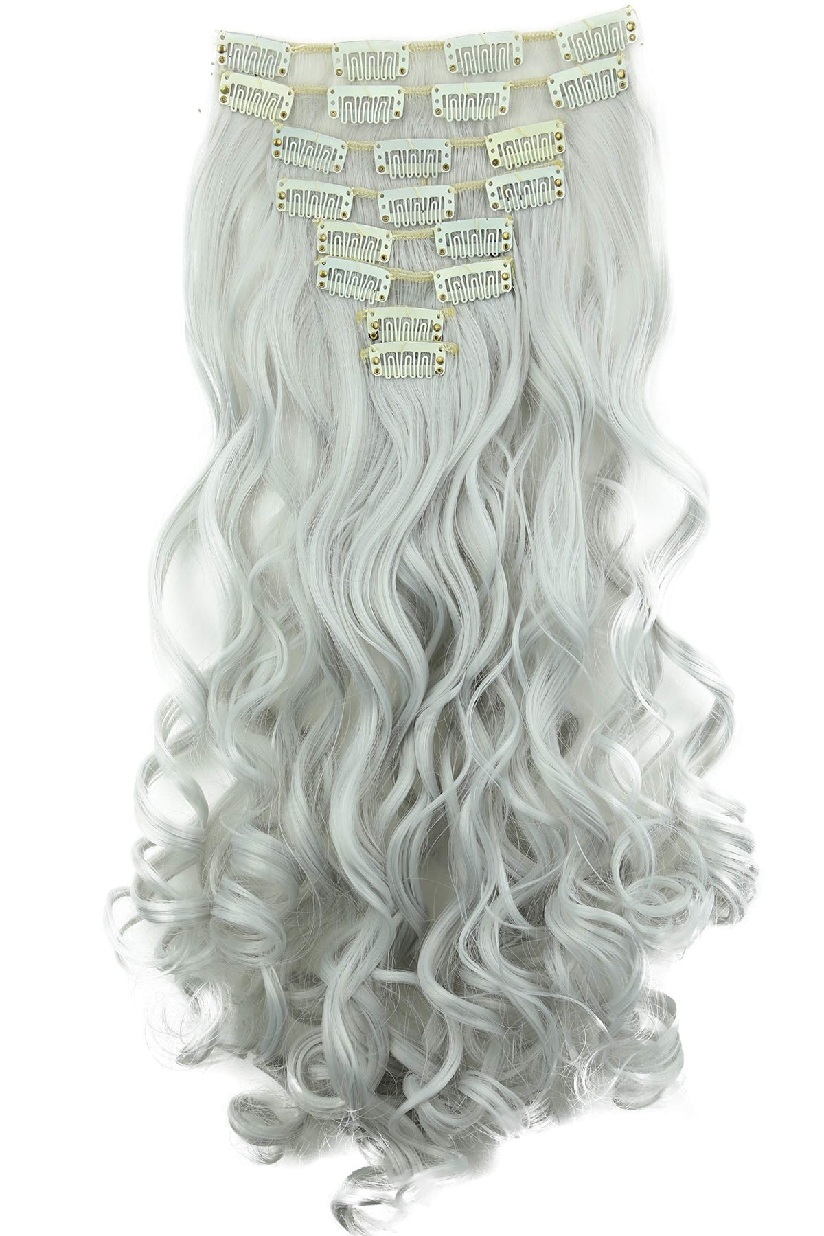 Prettyshop Clip in Extensions 24 (60Cm) Light Gray #Gray1 Ces28-1: Prettyshop Xxl Full Head Set 8 Pcs 24 Clip In Hair Extensions Hairpiece Wavy Heat-Resisting Light Gray Ces28-1