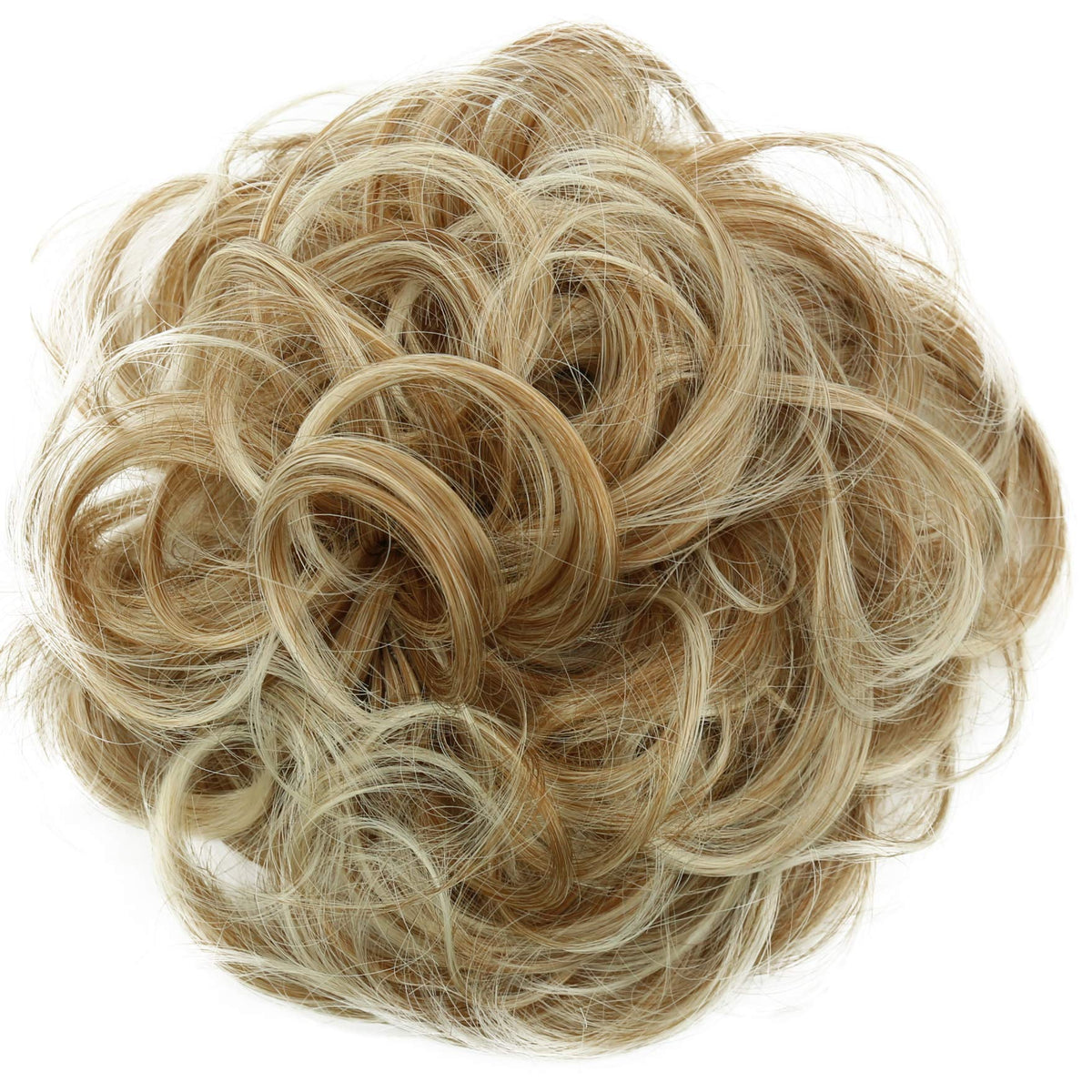 Create elegant updos with the PRETTYSHOP XL Hairpiece Scrunchy in Blond Mix. This voluminous curly messy bun adds a touch of sophistication to your hairstyles.