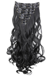 PRETTYSHOP XXL Set 8 pcs 24 Clip In Hair Extensions Full Head Hairpiece Wavy Curled Or Straight Heat-Resisting Div. Colors (jet black curled #1 CES1-1)