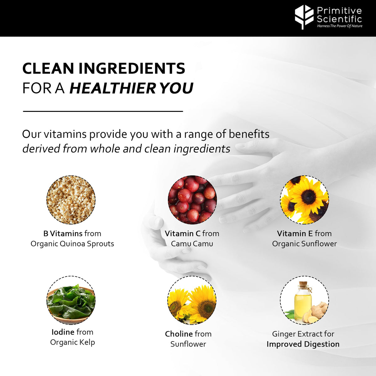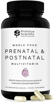 Primitive Scientific Prenatal and Postnatal Multivitamin for Women, with Vitamins A, B, C, D, E, Iodine, and Ginger for Mother & Baby Support, Non-GMO, Gluten-Free (120ct)