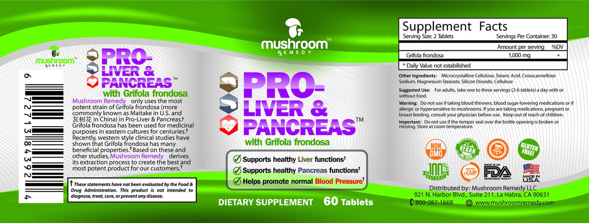 PRO-Liver & Pancreas | Best All-Natural Herbal Supplement for Pancreas & Liver Support, Detox, Clinically Studied Grifola frondosa Mushroom Extract, Vegan, NON-GMO, USA Made, 60 Tablets