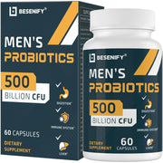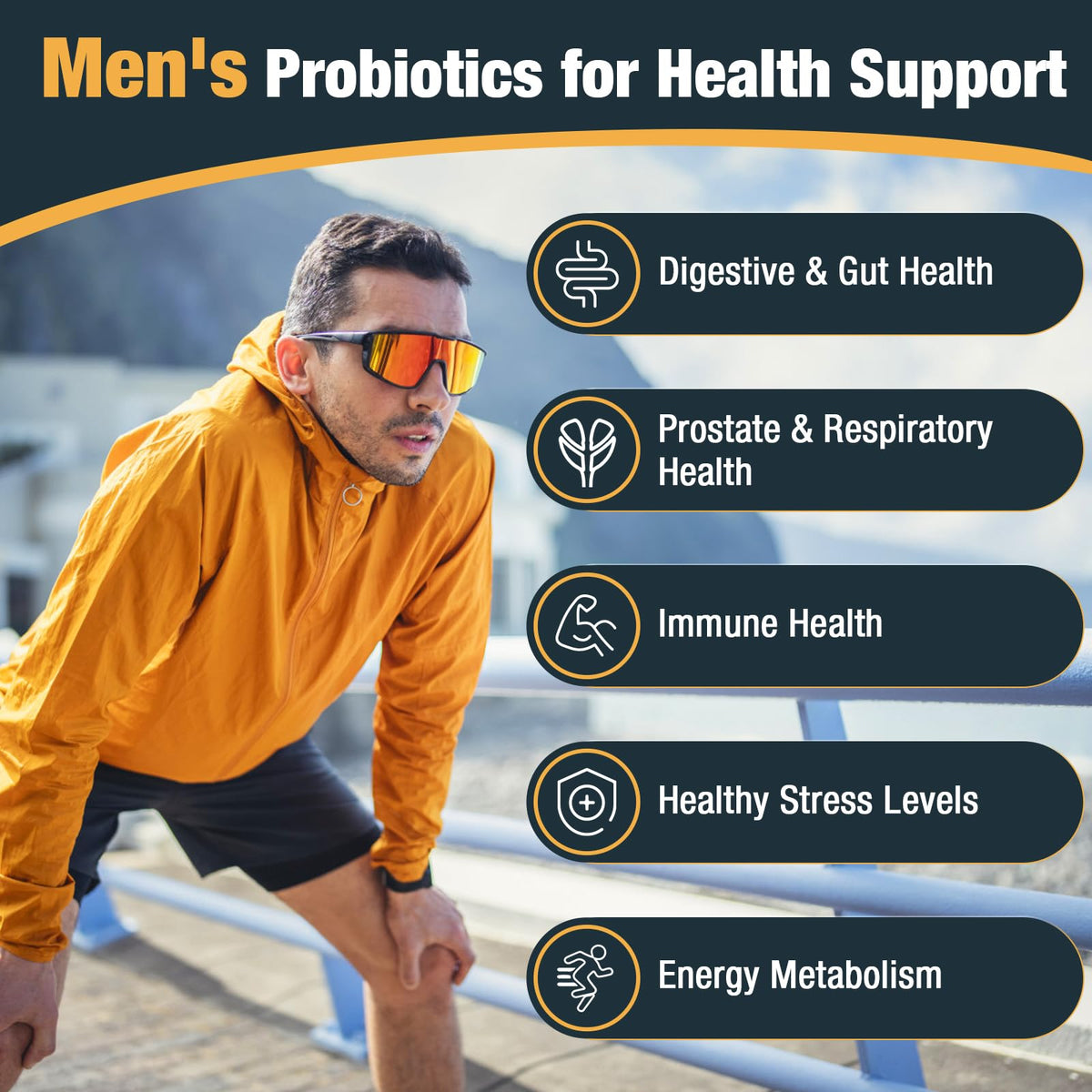 Boost your digestive and immune health with Probiotics for Men. This supplement contains 500 Billion CFUs & 12 Strains, along with beneficial ingredients like Turmeric, Cranberry, and Goji.
