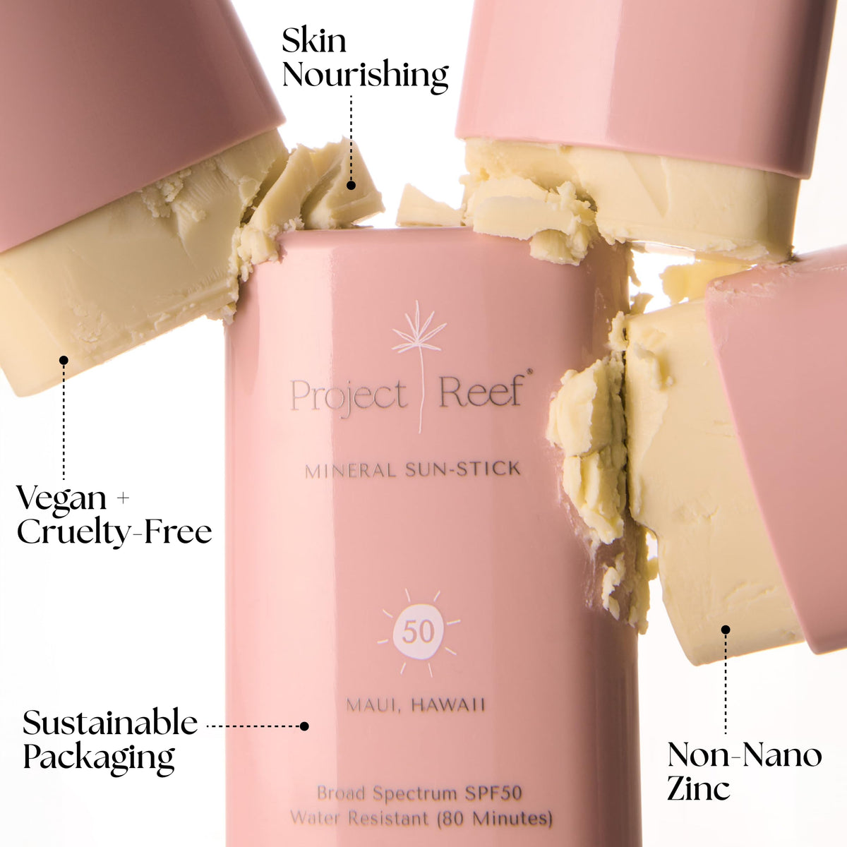 Project Reef SPF 50 Sheer Mineral Sunscreen Stick - Vegan, Reef Safe, Non-Nano Zinc, Face Sunblock Stick, No White Residue, Ideal for Travel & Kids