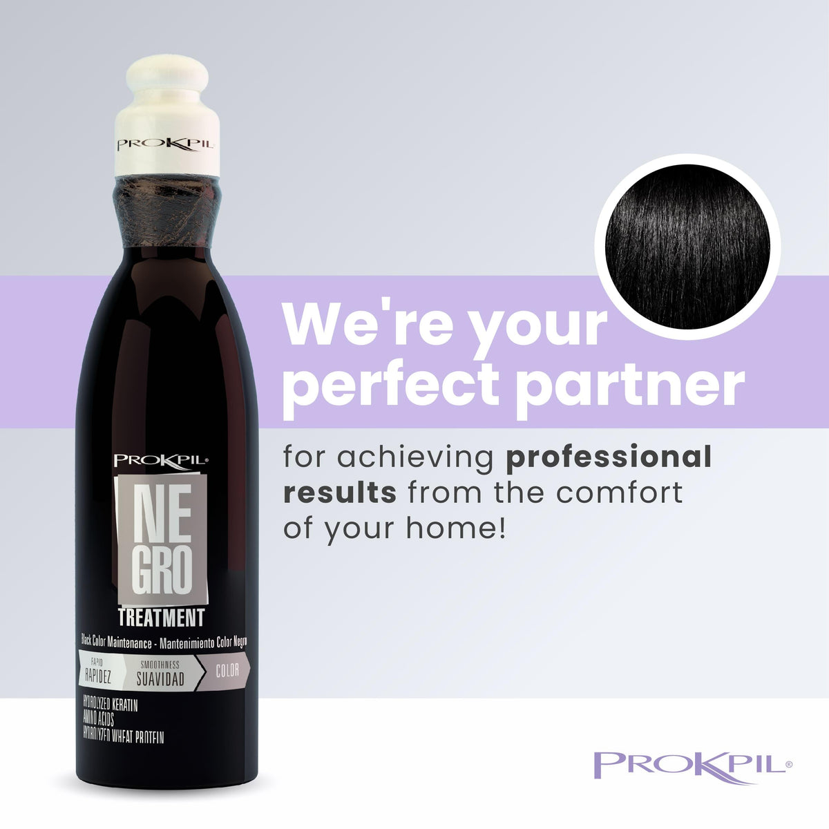 Prokpil Negro Especial Tratamiento de Color Matizante is a specialized treatment for gray, blond, or black hair. This matizador enhances and maintains your hair color, giving it a vibrant and fresh look.