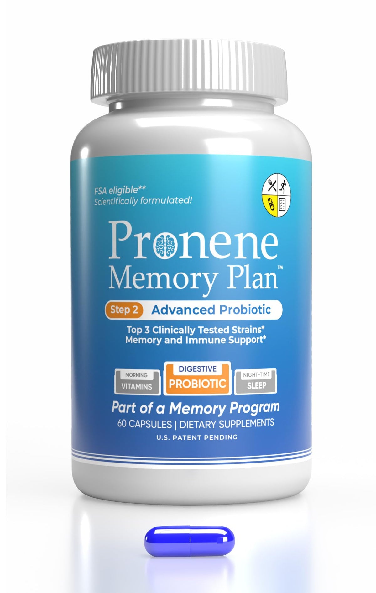 - Comprehensive 3-Step Program - Within the Pronene Memory Plan, our Advanced Probiotic capsule is one of 3 crucial supplements tailored across the day to provide 24 hours of optimal empirically-based brain and memory support. The program also includes the Morning Brain Multivitamin and Optimized Sleep Support supplements, each with unique color-coded capsules, that are carefully designed to work together with the minimum number of bottles to help maintain a healthy memory, immune system, and a better you as we age.