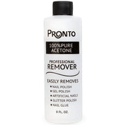 Pronto 100% Acetone Gel Nail Polish Remover is a professional-grade solution for effectively removing gel, acrylic, and dip nail polishes. This 8 fl oz remover ensures quick and efficient removal without damaging your nails, providing a clean slate for your next nail art creation.