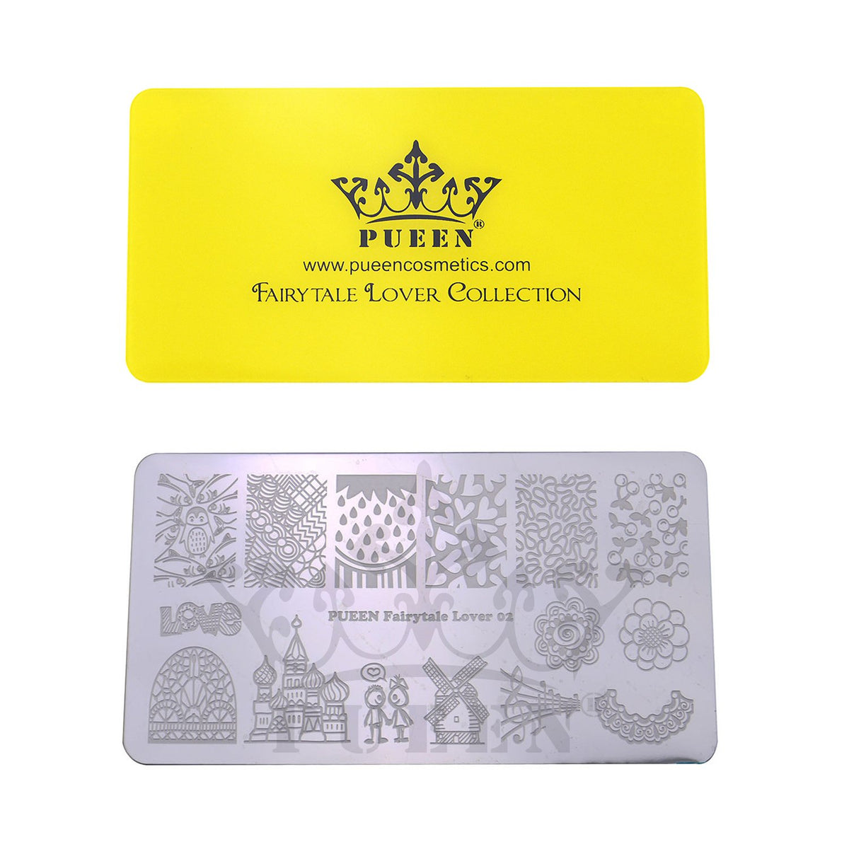 Create enchanting nail art with PUEEN Nail Art Stamping Plate - Fairytale Lover 02. This unique nail art kit includes 125x65mm plates with intricate designs for stunning manicures.