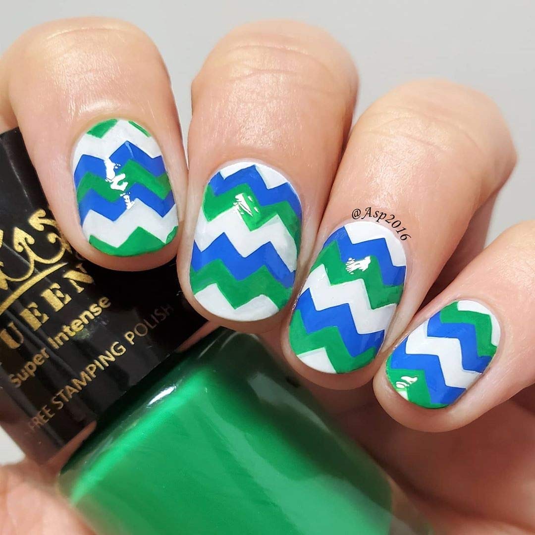 PUEEN Super Intense Nail Art Stamping Polish from the Happy Holiday Color Collection offers vibrant and long-lasting nail colors. This set includes So Red and Amazon Moss shades, perfect for creating stunning nail art designs.