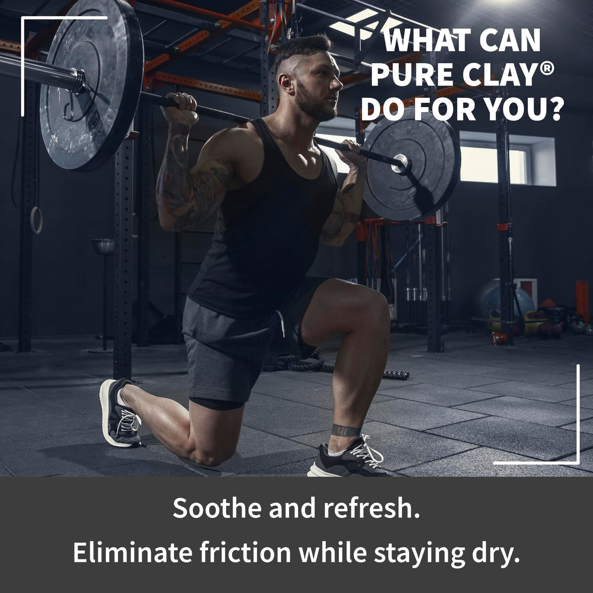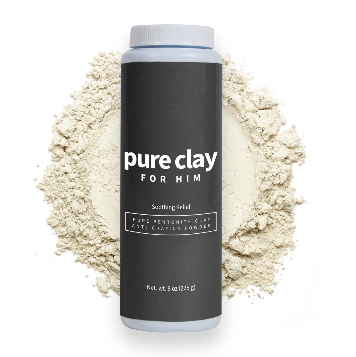 PURE CLAY All Natural Mens Anti Chafing Powder, Deep Mined Calcium Bentonite Clay Powder, Body, Groin, Arm Pit, Foot, Anti Chafe Powder, Paraben Free, Talc Free, Food Grade Organic, 8 oz