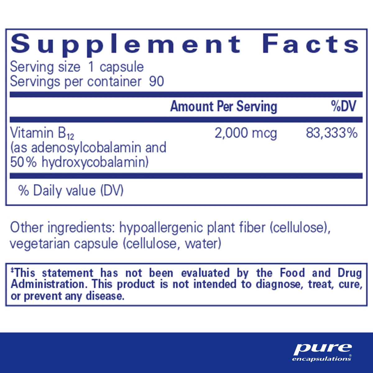 Pure Encapsulations Adenosyl/Hydroxy B12 90's - High-Potency B Vitamin - for Energy Metabolism & Neurological Support* - Brain Support Supplement* - Vegan & Gluten Free - 90 Capsules