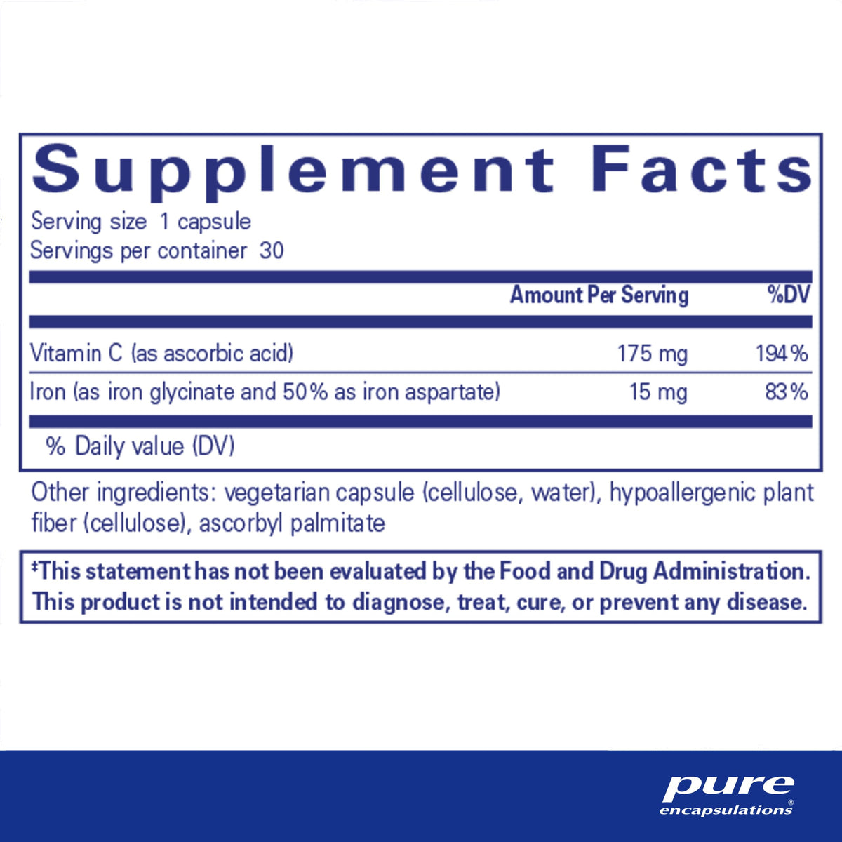 Pure Encapsulations Iron-C - 15 mg - 175 mg Vitamin C - Red Blood Cell Support* - Energy Production - Highly Bioavailable Iron Pill - Gluten Free & Vegan - 30 Capsules