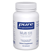 Pure Encapsulations Multi T/D is a comprehensive multivitamin and mineral supplement designed to support daily wellness, cardiovascular health, and immune function. Rich in essential vitamins and minerals, this gluten-free and vegetarian formula comes in 120 easy-to-swallow capsules.