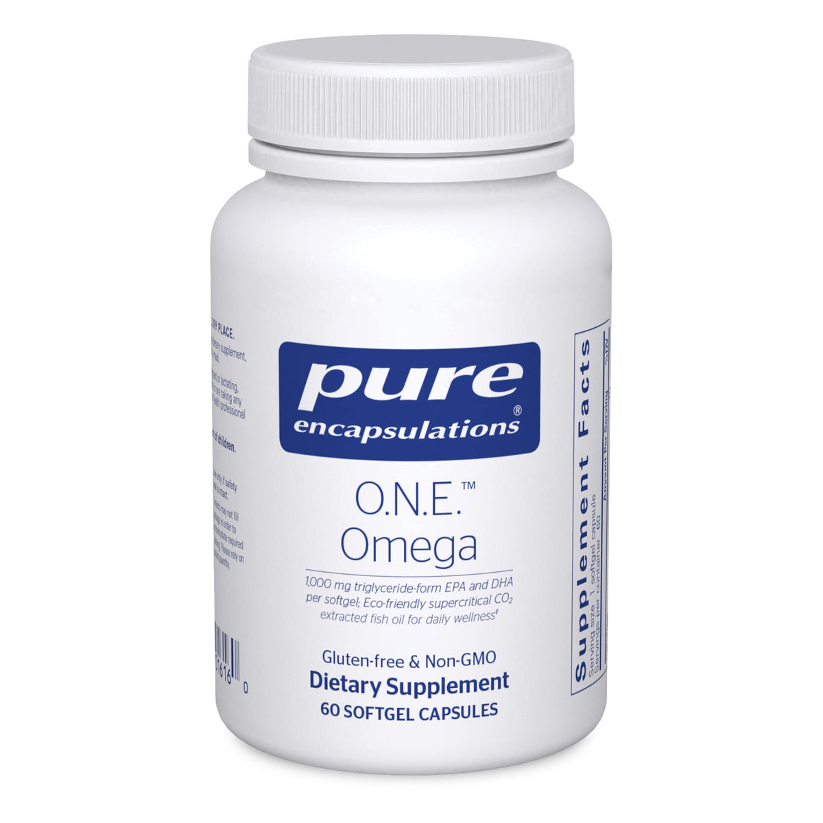 Support your heart, joints, skin, eyes, and cognition with Pure Encapsulations O.N.E. Omega Fish Oil Supplement. Each softgel capsule contains a concentrated blend of EPA and DHA for overall wellness.