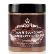 Transform your skincare routine with PureNaturis Coconut Coffee Sea Salt Scrub, a 10.58 Ounce exfoliating and moisturizing scrub for face and body.