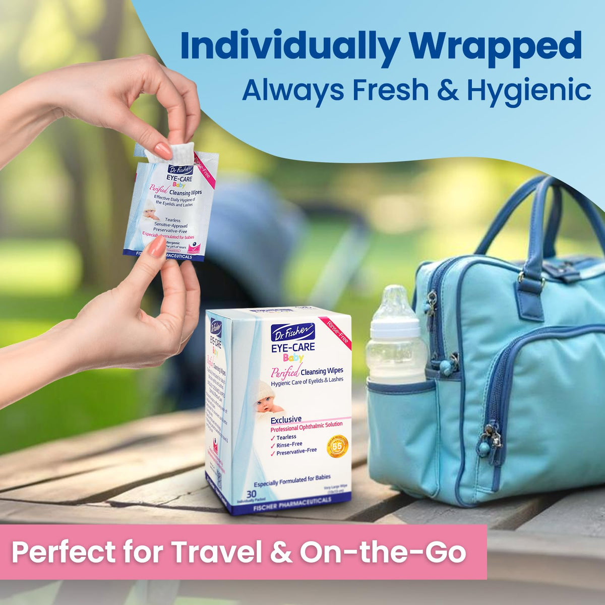 Purified, Non Irritating, Tear Free, Hypoallergenic & Sensitive Approved Baby Eyelid Wipes by Dr. Fischer – Pre-moistened, Rinse Free and Pediatrician Recommended - (30)
