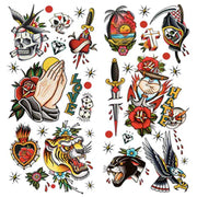 Express your unique style with PUSNMI Classic Temporary Tattoos. This set of Sailor Jerry-inspired tattoos features cool skull designs suitable for arms, legs, face, and more, perfect for adding a touch of edgy art to your look.