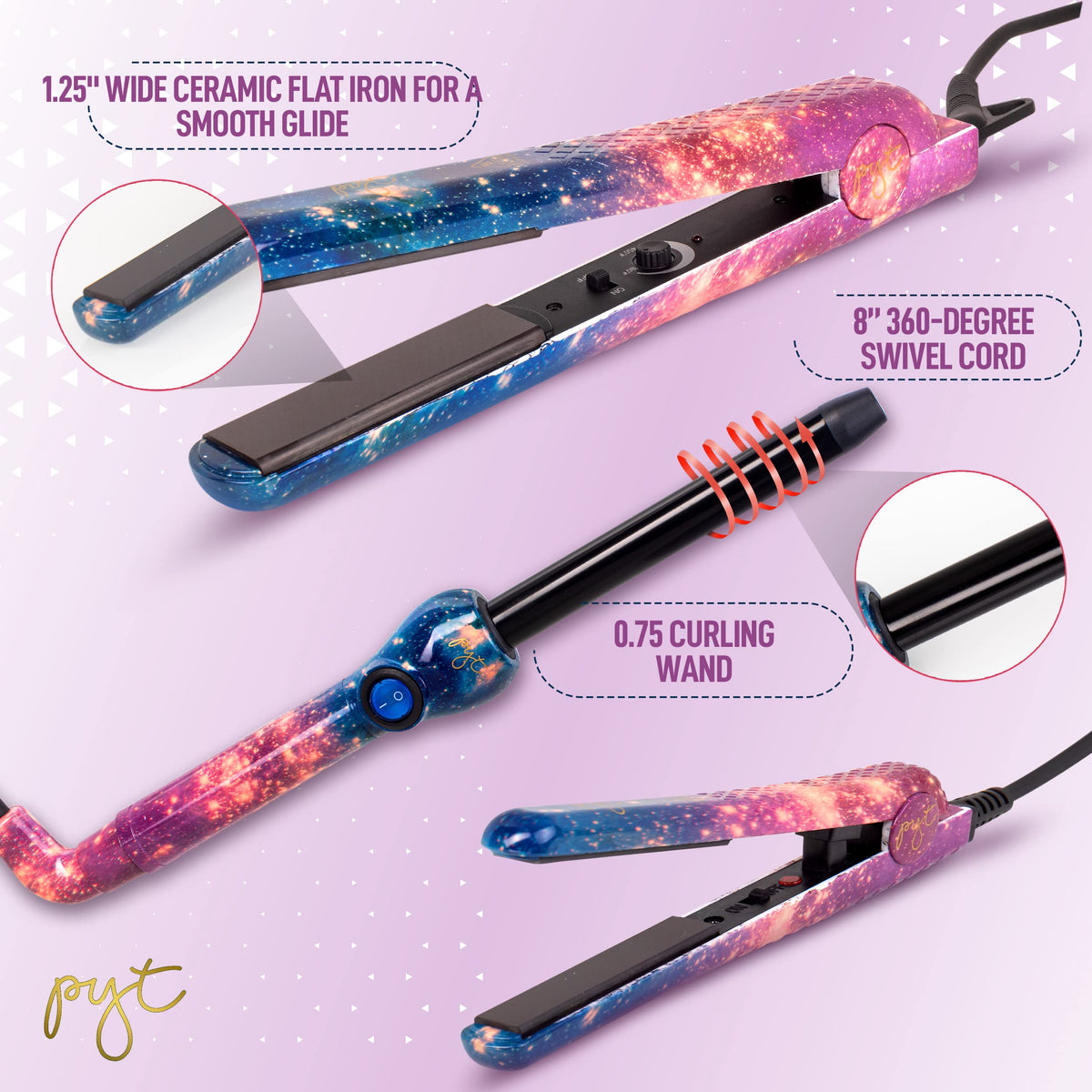 PYT Lola Styling Tools Set - Galaxy Design (Includes 1.25 Ceramic Straightener, Mini Flat Iron & Curling Wand)