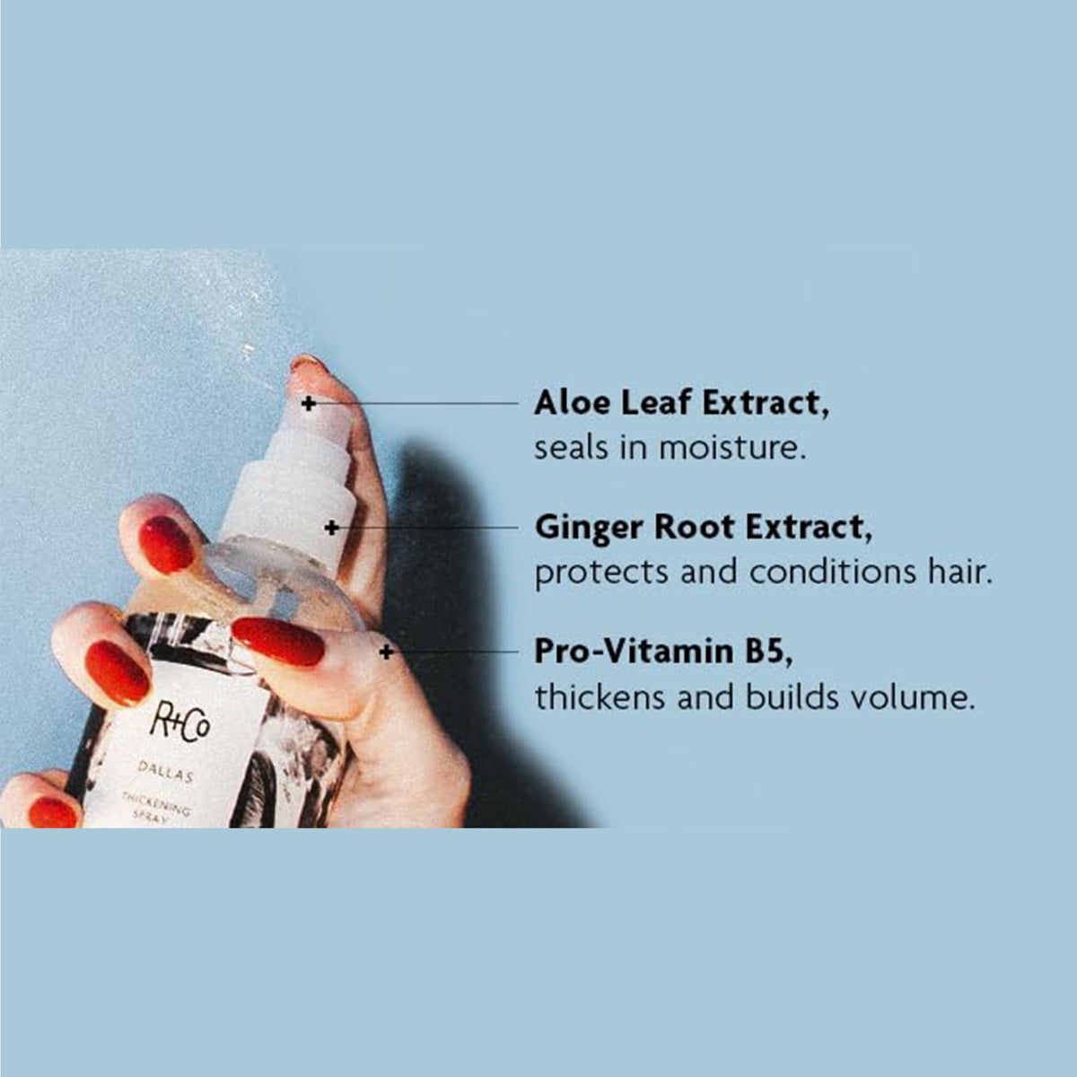 R+Co Dallas Hair Thickening Spray | Volumizing & Texturizing Spray for All Lengths | Adds Volume, Body & Shine | Perfect for Blowouts, Curling Irons & Roller Sets | 8.5 oz