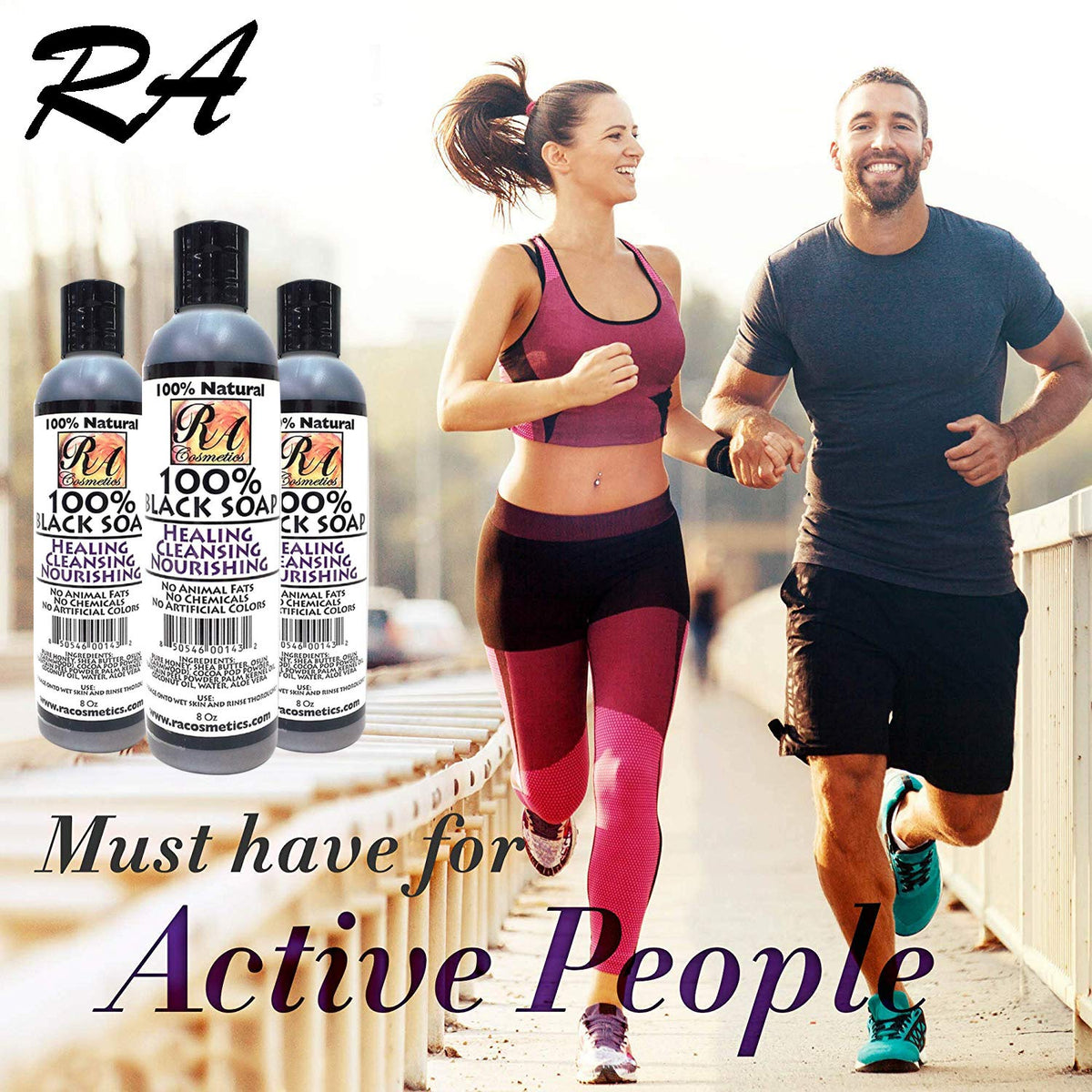 RA COSMETICS 100% African Liquid Natural Black Soap offers a pure and natural cleansing solution for skin, providing gentle care and nourishment.