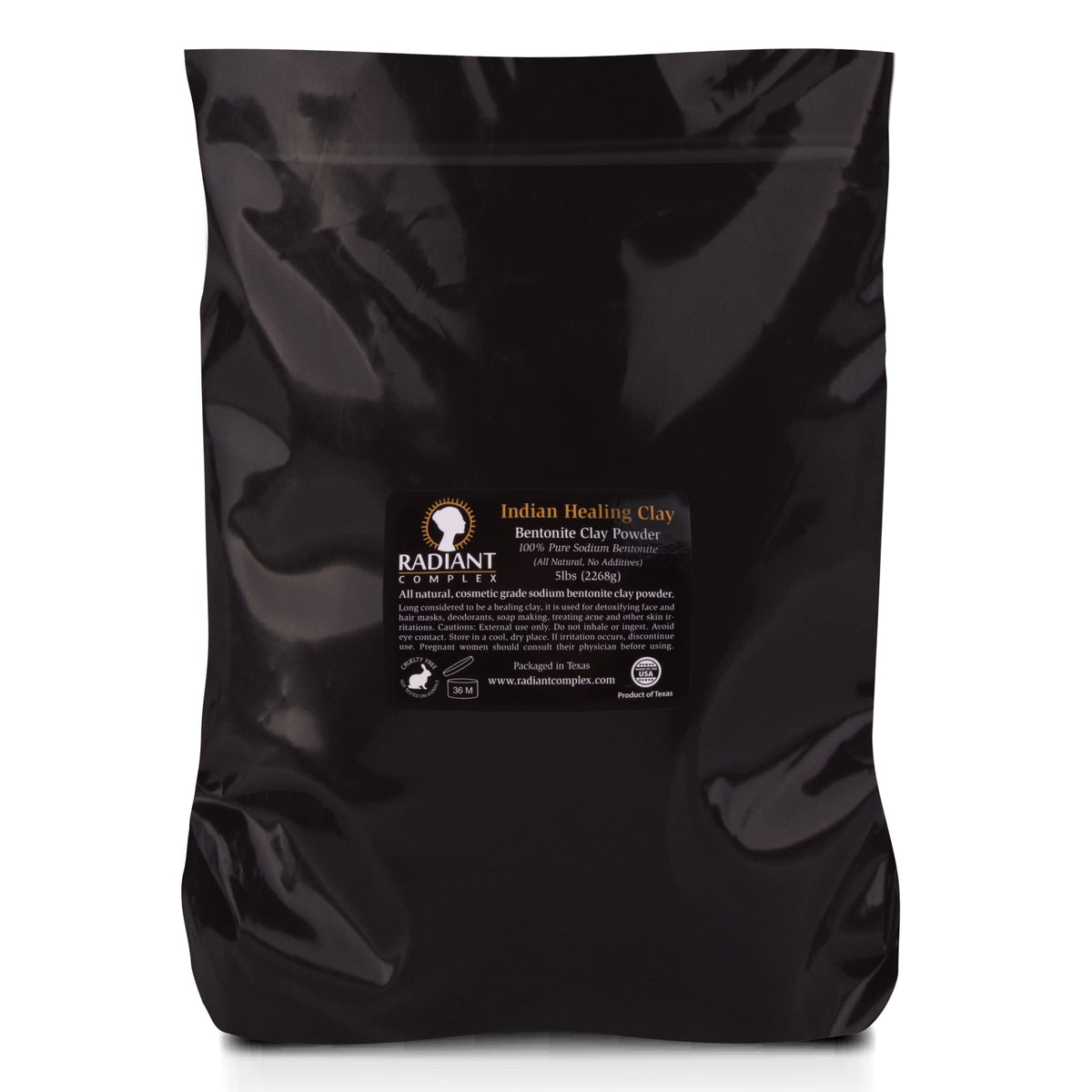 Radiant Complex Sodium Bentonite Clay Powder offers 100% pure sodium bentonite for a DIY clay face mask. This 5 lb pack of Indian healing clay provides deep cleansing and purification for the skin.
