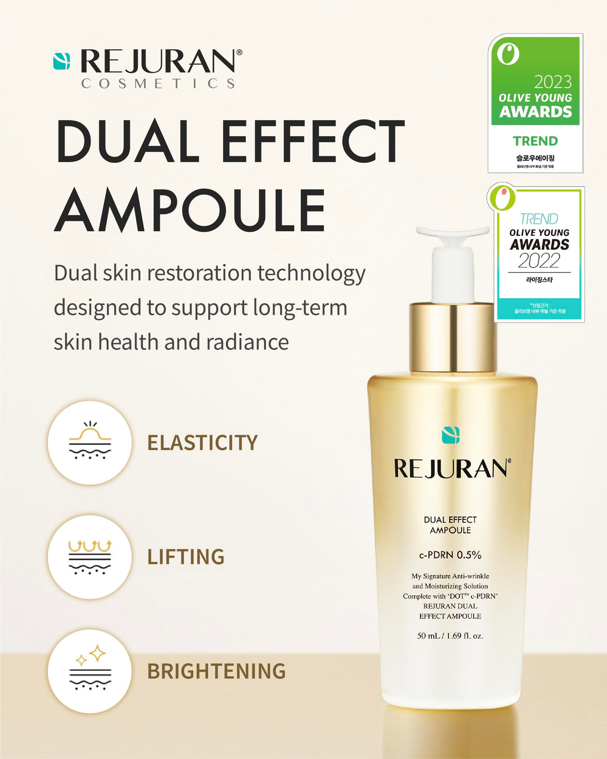 REJURAN® Dual Effect Ampoule, DOT DUAL c-PDRN® [Larger Size] - Salmon DNA Face Serum for Deep Rejuvenation, Wrinkle Care, Skin Elasticity with Visible Anti-Aging Results. Korean Skincare (1.69 fl oz)