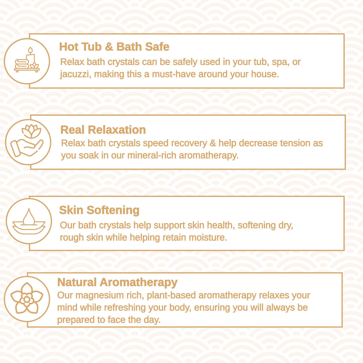 | product benefit | Natural Spa Bath Aromatherapy Crystals with Dead Sea Salts |