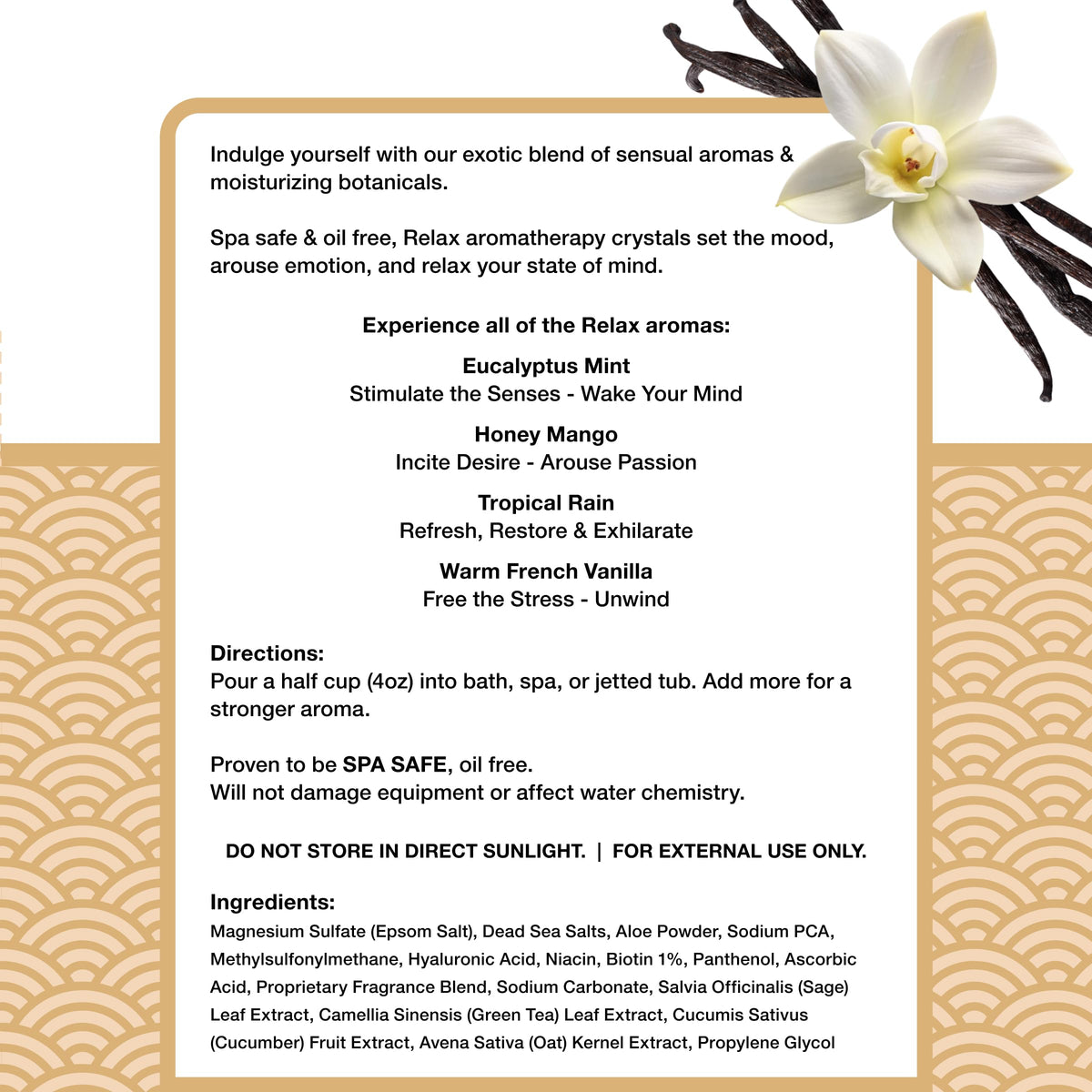 Relax Spa & Bath, Epsom & Dead Sea Salts, Aromatherapy Bath Salts for Hot Tub, Bath, or Spa, Infused with Magnesium, Warm French Vanilla Scent