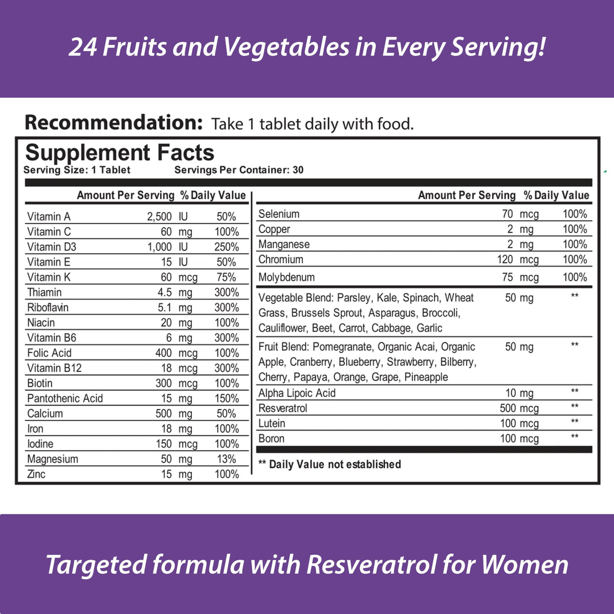 Reload! for Women, All Natural, Multivitamin, Multimineral, and Antioxidant with 24 Fruits and Vegetables as Well as Biotin for Hair, Skin, and Nails. 1 Month Supply.