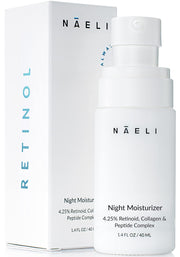 - NAELI RETINOL NIGHT CREAM - a potent, retinol cream for face and neck, anti aging 4.25% retinoid, collagen & peptide moisturizer cream that stimulates collagen, increases skin firmness and elasticity. Visibly smoothens fine lines and wrinkles.