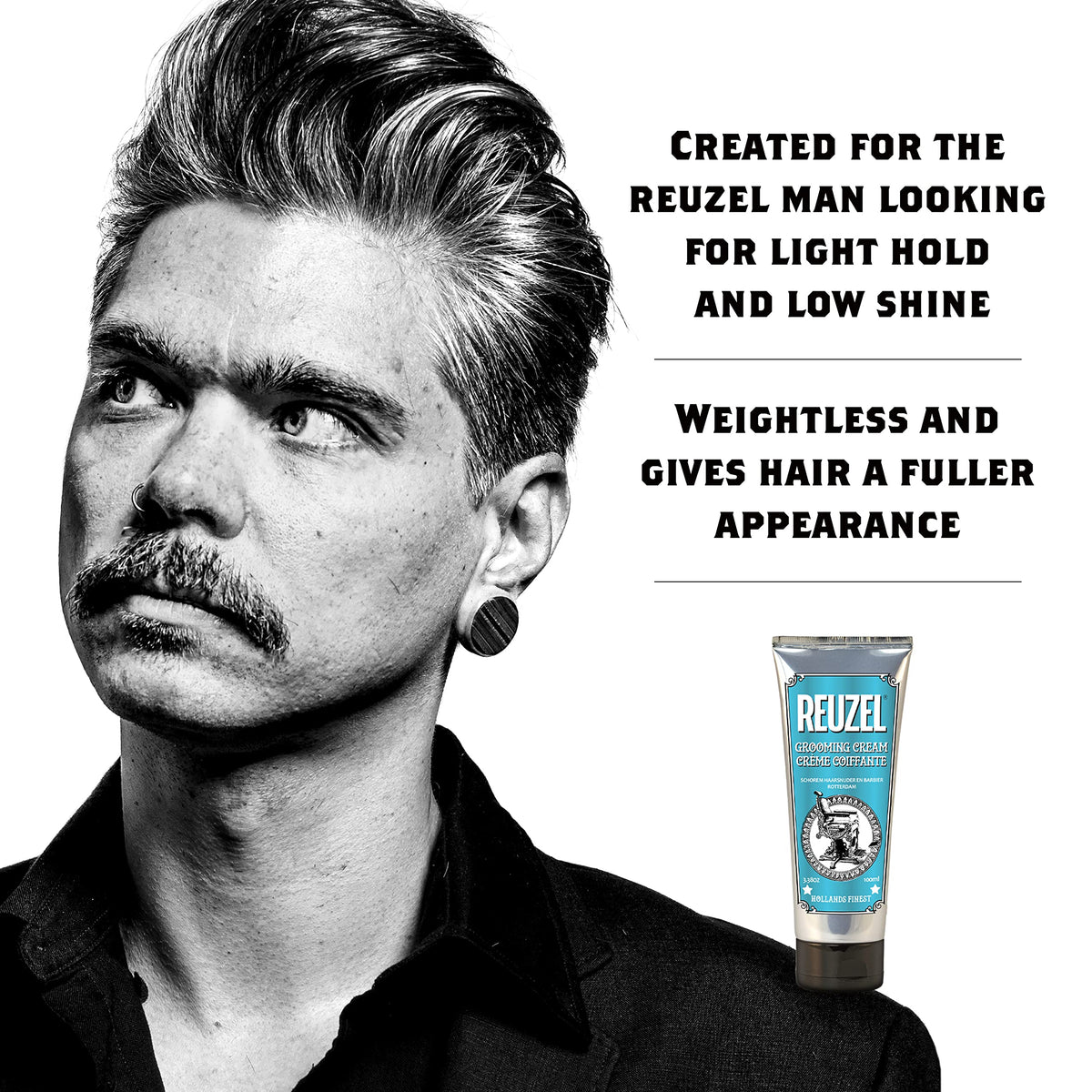 Short Product Description :: The Reuzel Grooming Creme provides a light hold and works well for all hair types, especially finer hair where added texture or increased definition is desired. The weightless and water based formula tames hair while leaving a low shine finish.