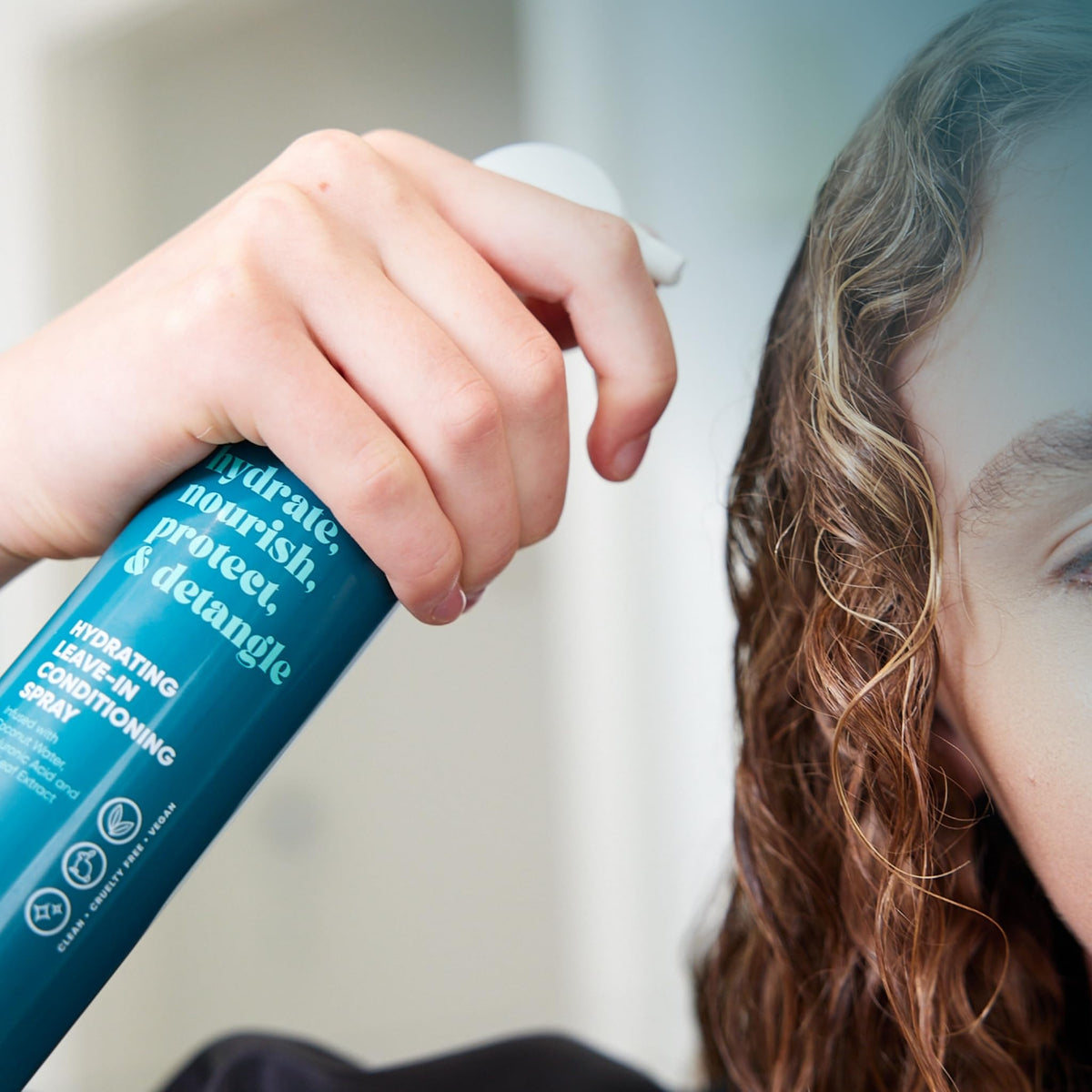 Hydrate and protect your curly hair with REVAIR Leave-In Conditioner Spray. This cruelty-free spray helps detangle hair, provides heat protection, and is vegan-friendly.